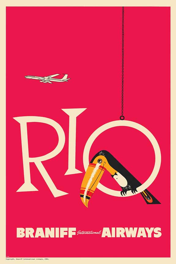 As empresas e seus cartazes que ilustram nosso calendário representam o auge da sofisticação aérea: a Varig, nossa “Estrela Brasileira”, que exportou a hospitalidade e o requinte nacional para o mundo; a Pan Am, pioneira da “Era de Jato” que conectou o Rio às celebridades de Hollywood com seus cartazes de design vibrante; e a Braniff International, que revolucionou o setor ao unir aviação e design moderno, promovendo o exotismo carioca através de uma explosiva paleta de cores.