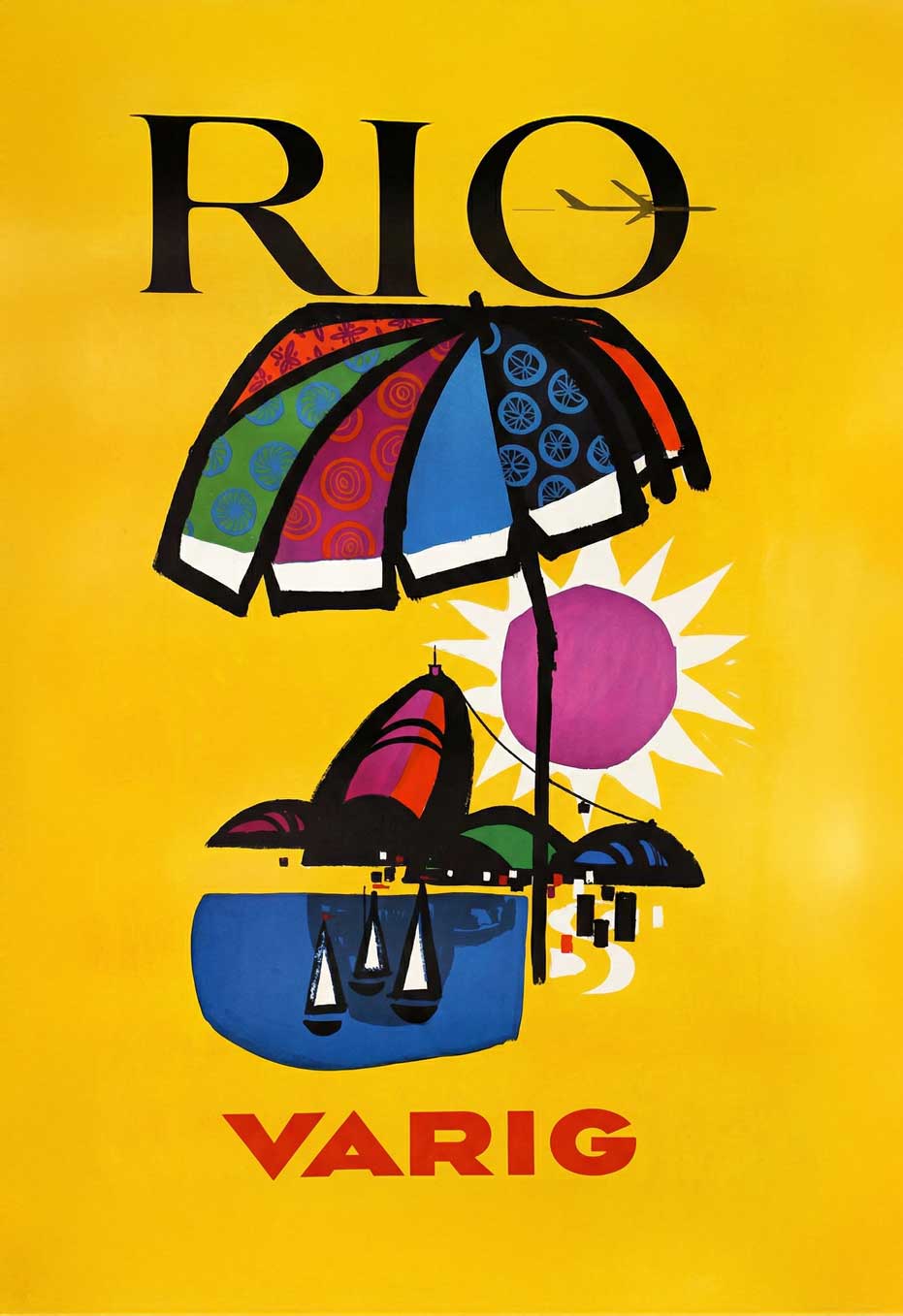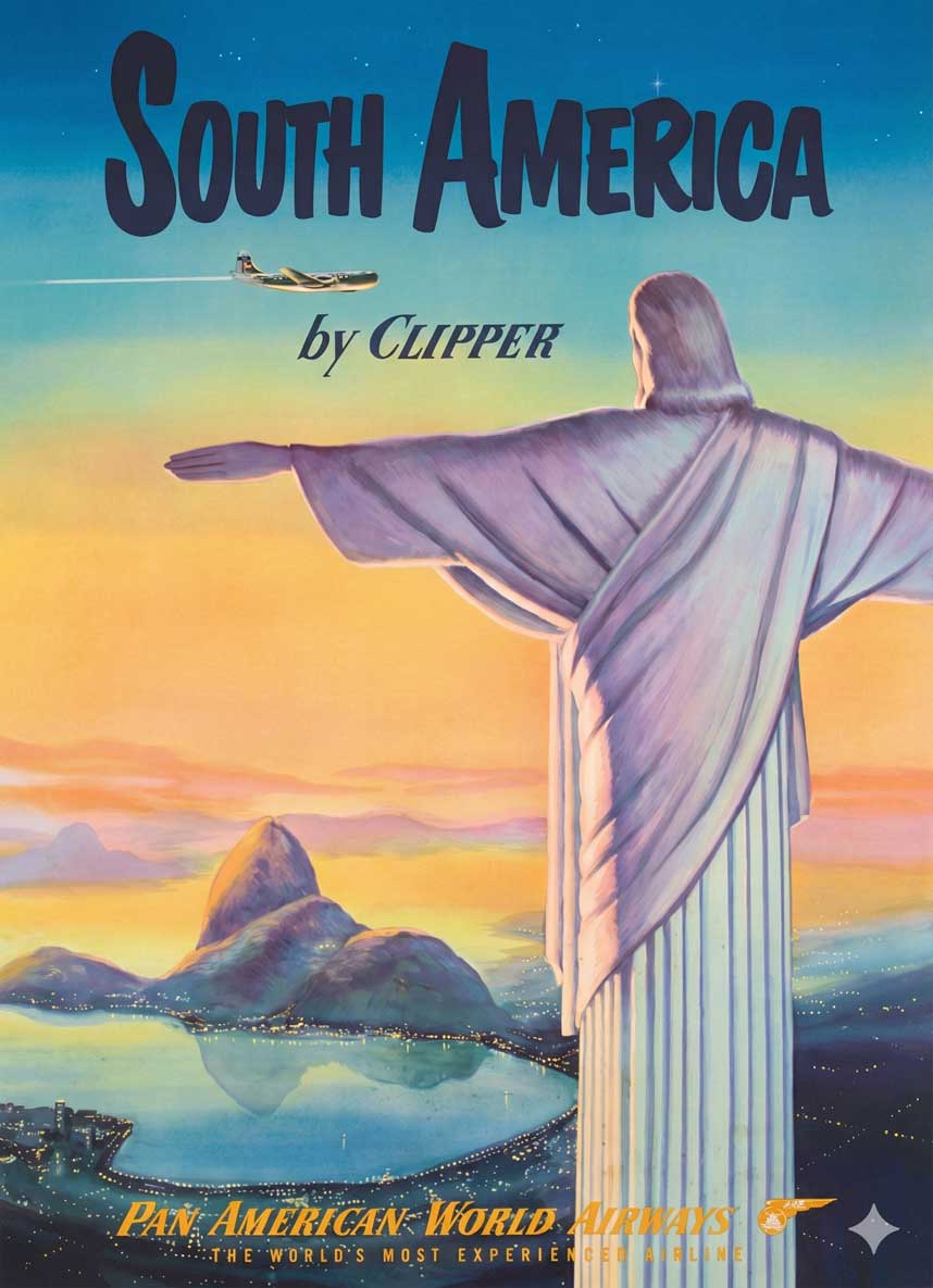Nas décadas de 40 a 60, o Rio de Janeiro era o epicentro do glamour sul-americano. As viagens internacionais eram experiências exclusivas: os passageiros vestiam seus melhores trajes, o serviço de bordo era comparável aos melhores restaurantes da Europa e as aeronaves eram verdadeiros salões de luxo suspensos. Chegar ao Aeroporto do Galeão ou ao Santos Dumont era o início de uma jornada mágica, celebrada por cartazes publicitários que eram verdadeiras obras de arte, criadas para capturar o espírito solar e sofisticado da capital carioca.