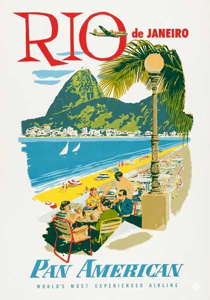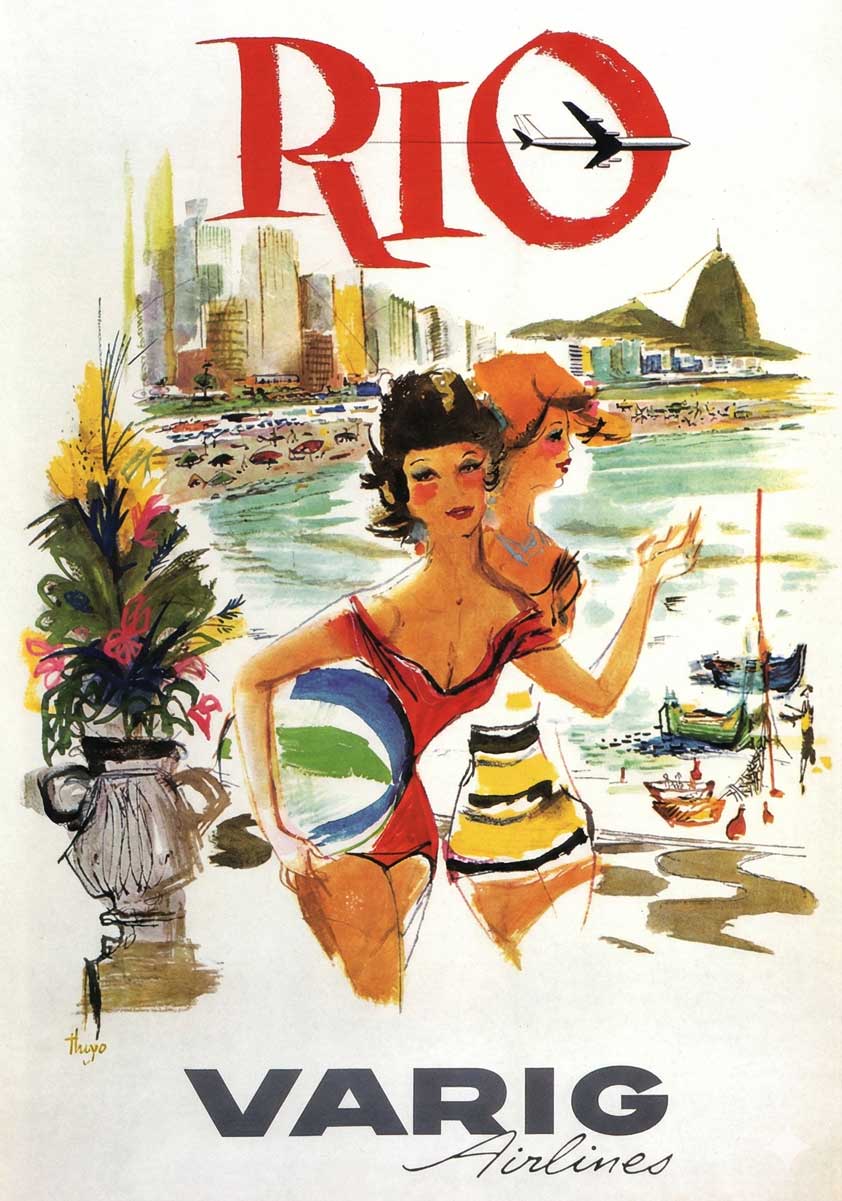 Foi com empresas como estas que chegaram ao Rio personalidades como Walt Disney, Orson Welles, Albert Einstein e Ava Gardner. Desta época, selecionamos uma iconografia pitoresca e glamourosa que ilustra como a cidade era promovida ao redor do globo.